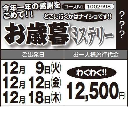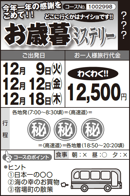 お歳暮ミステリーツアー & 年末お買物ツアー & 道の駅ツアーも人気です!
